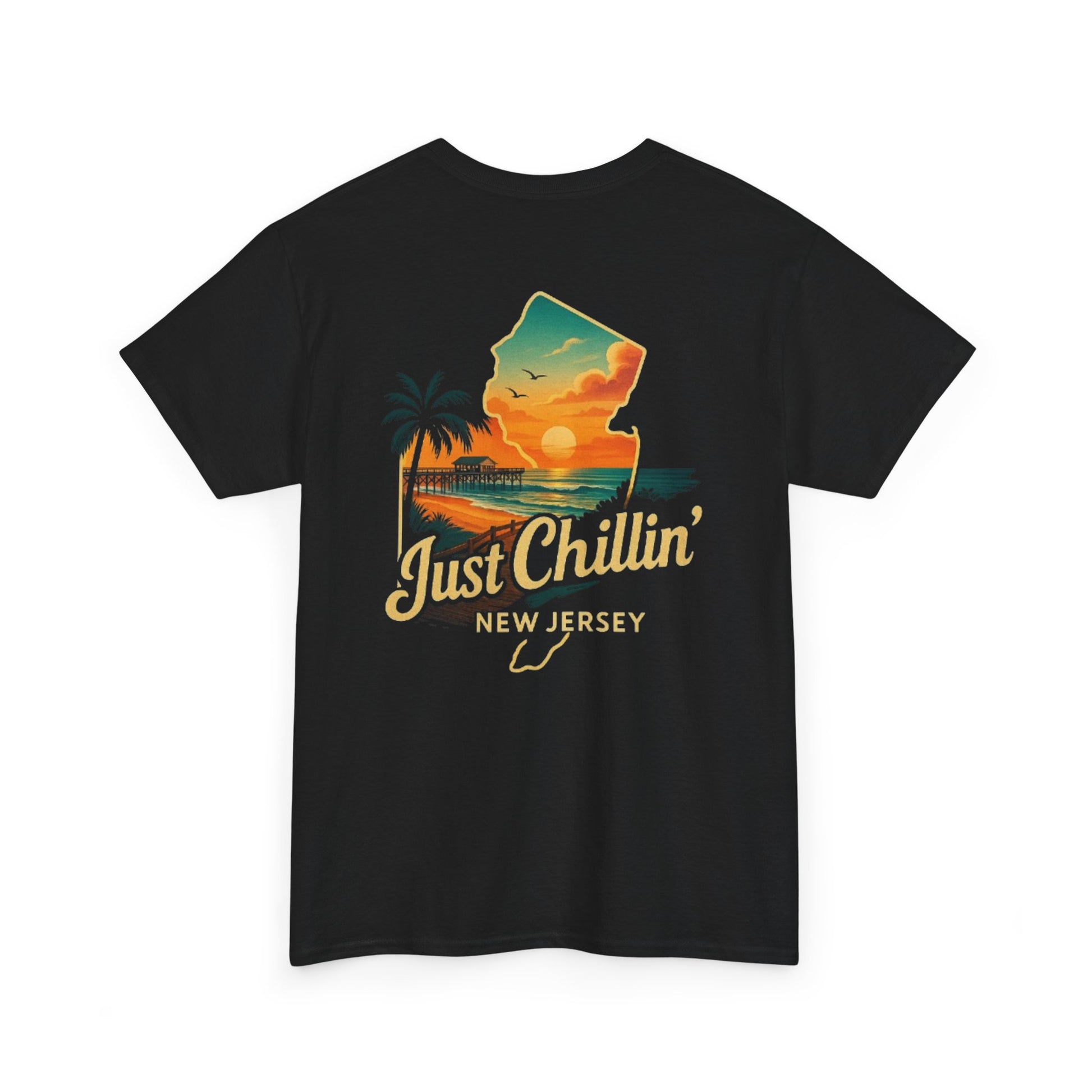 Unisex Heavy Cotton Tee - Just Chilling NJ Sunset Design, Casual Wear, Summer Vibes, Beach Outfit, Gift for Friends, Relaxation Tee